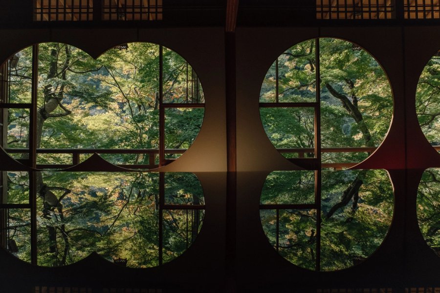 Scenes from the Yusai-tei gallery in Arashiyama, Kyoto. Featuring the Round Windows room, Water Mirror and Scenic Terrace.